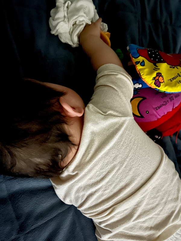 구내염 발병 초기엔 열이 38도 였는데, 그 날 오후에는 해열제를 먹고도 40도 가까이 열이 올랐었어요. 다행히 아이가 순해서 아프니까 잠만 자더라고요. 뜨거운 몸으로 누워있는데 엄마 마음은 찢어지고... 다행히 해열제를 추가로 복용하니 열은 내렸지만, 평소와 다르게 기운없어 보이긴 했었어요.