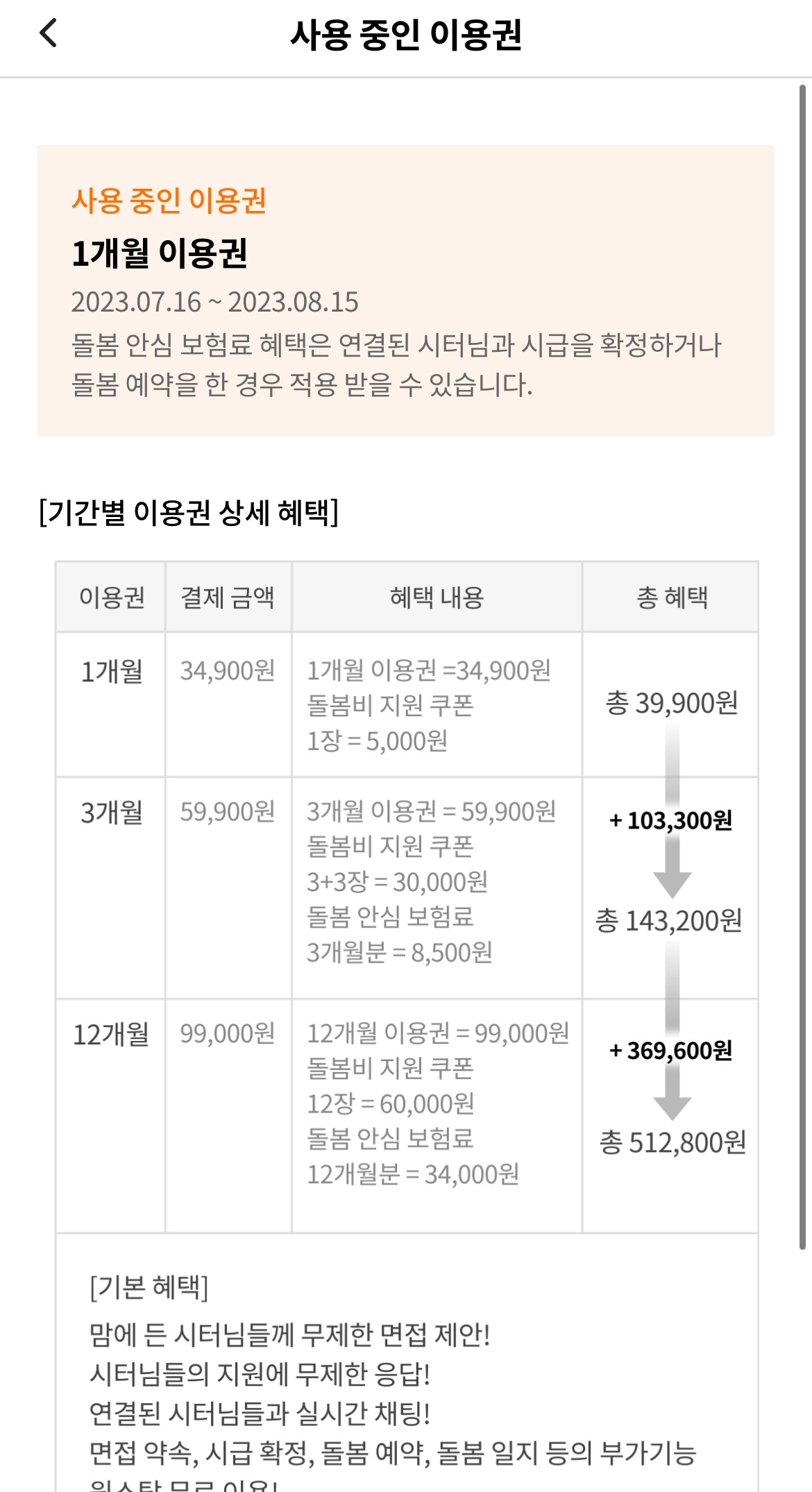 맘카페에 검색해보니 맘시터라는 어플을 많이 사용하는거 같더라구요. 연결이 안 되면 연차를 쓰자는 마음으로 우선 구인공고를 올렸어요. 시간이 얼마 지나지 않아 바로 메세지가 오더라구요. 하지만 결제를 해야만 대화를 할 수 있었어요. 그래서 가장 저렴한 1개월 이용권을 구매했어요.