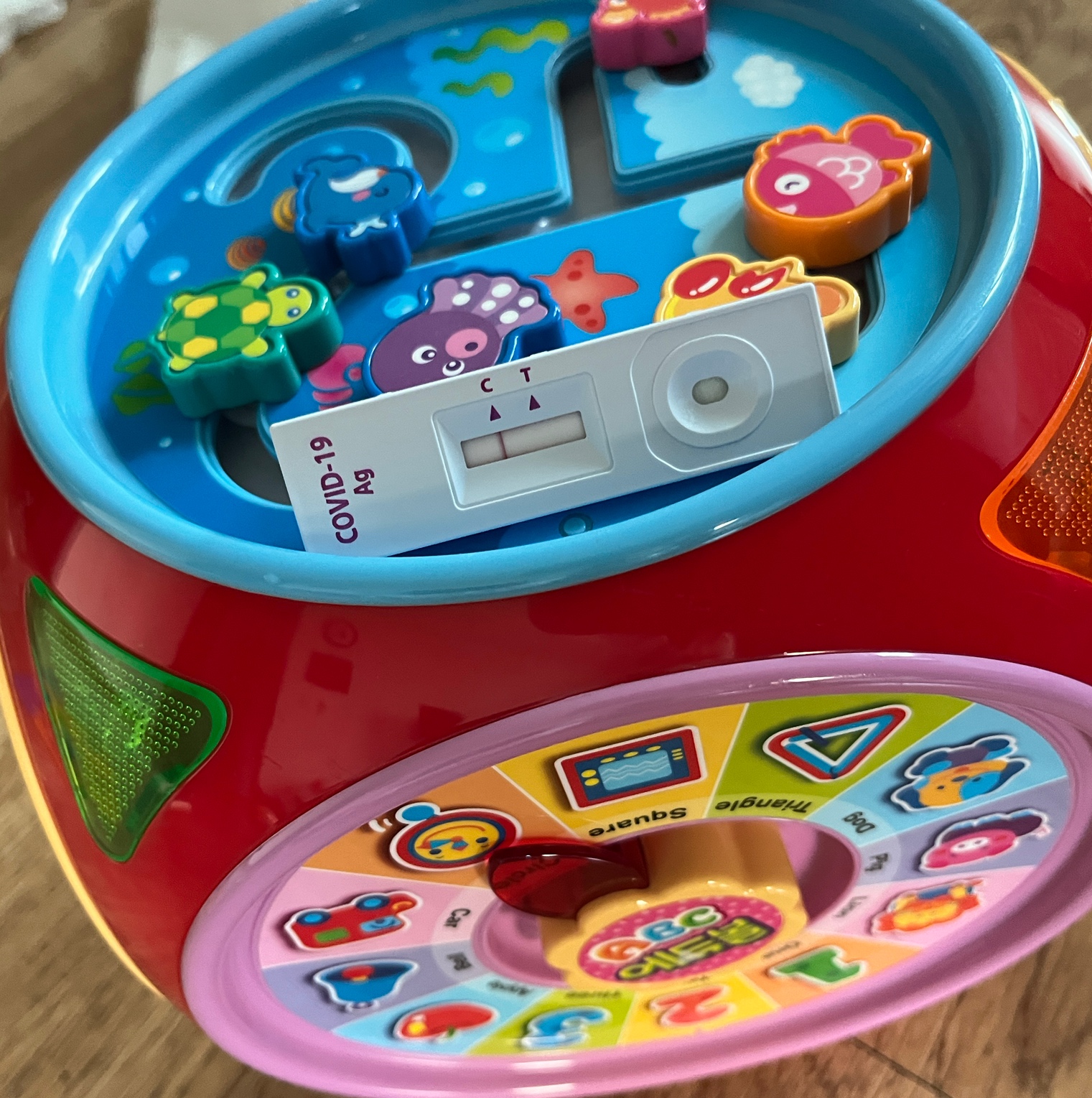 코로나 라고 해도 특별한 치료법은 없으니 상황이 달라지는건 없지만 그래도 혹시나 하는 마음에 코로나 자가진단 키트를 꺼내서 테스트 해봤어요. 아이 코를 찌르니까 또 한참을 울고 ㅜㅜㅜㅜ